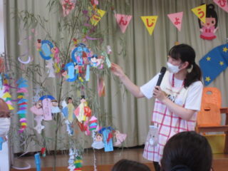 最後はみんなで季節の歌「たなばたさま」をうたいました。