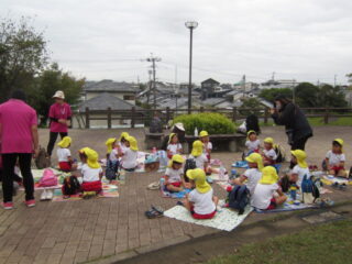 たくさんどんぐりを拾った後は、お待ちかねのお弁当タイム。