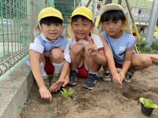 グループのお友だちと力を合わせて、苗を植えていきましたよ♪