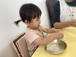 何が始まるのかな?とワクワク!粘土を作る過程もじっくり観察です。