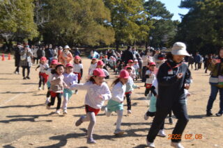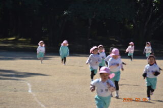 運動広場をひよこ組は4分の1周、こあら組は半周、りす組は1周、ぱんだ組1周半、ぞう組は2周走りました。