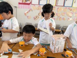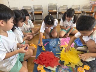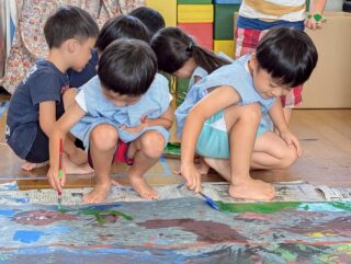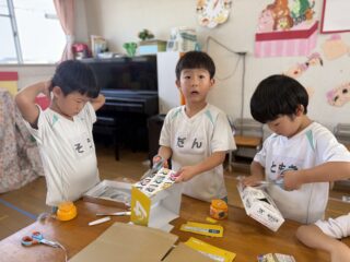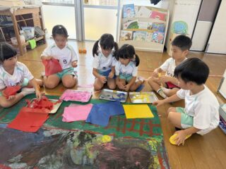 初めての共同制作となりましたが、子どもたちならではのたくさんの面白い発想、制作をとても楽しんでくれる様子、そして、お友だちの意見も受け止めながら「じゃあこうしよう!」「それいいね!」と話し合う姿を見てとても成長が感じられる時間でした🎀ᩚ