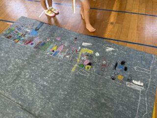 届いた大きな大きな模造紙を見て「何をつくる?」とたずねると、ワクワクした目でたくさんのアイデアを出してくれました🤩