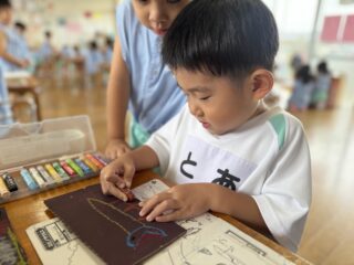 そこでキラキラしたものはなにかな??と考えるとモールを見つけた夜チームさん。モールを切ったり形を変えたりしながら、とっても工夫して花火作りをする様子が見られました🎇