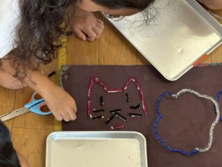 そこでキラキラしたものはなにかな??と考えるとモールを見つけた夜チームさん。モールを切ったり形を変えたりしながら、とっても工夫して花火作りをする様子が見られました🎇