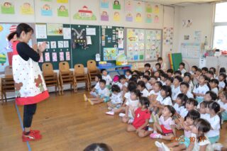 大型絵本で、不審者に声をかけられたらどうするかを学んだり、DVDでは地震や火災、洪水時に