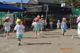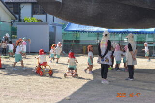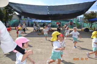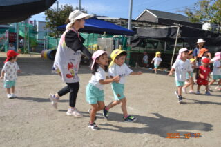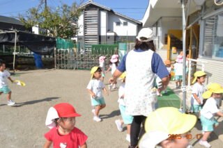 園庭でみんな楽しく遊んでいると、玄関に知らない人が・・・。