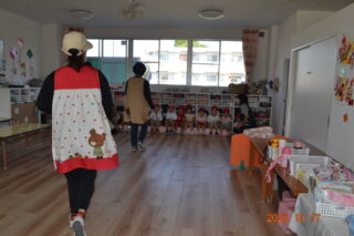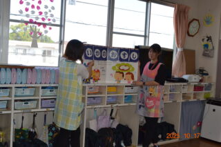 1学期に避難の合図がしたら保育室の中に逃げ込むことをしました。