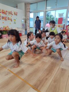 ピアノの音楽のリズムに合わせて楽しく遊ぶ体操です。