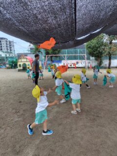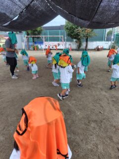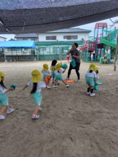 今回はビブスを使ってキャッチごっこやしっぽ取りゲームをして楽しみました。