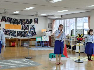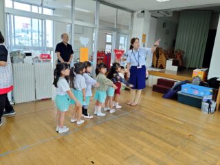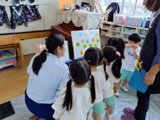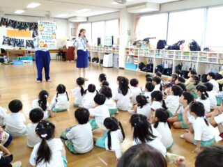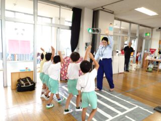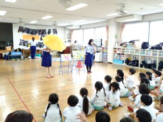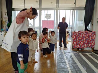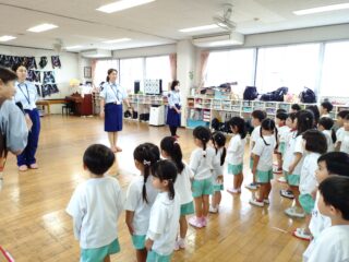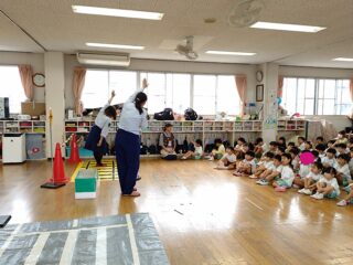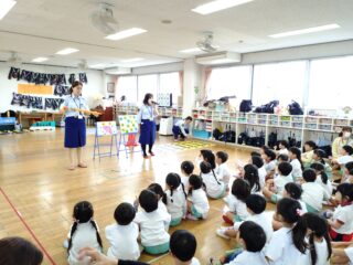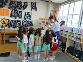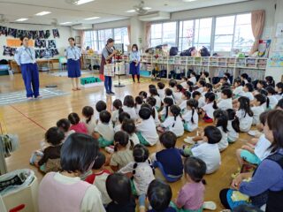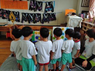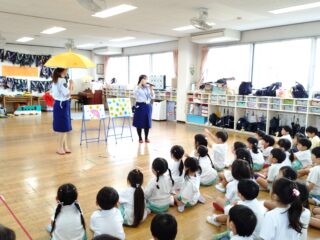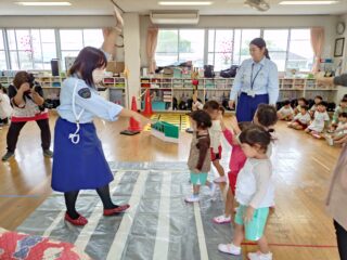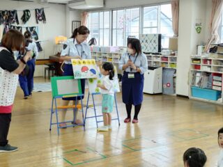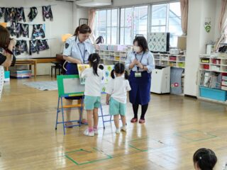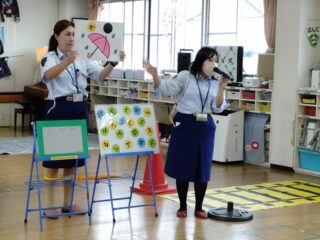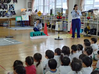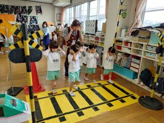 宮崎南交通安全協会の方に来ていただき、天気がよければ園庭で行う予定でしたが、