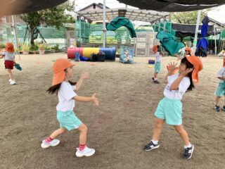 今週のスポーツ教室は、涼しい秋風の吹く中、外で元気いっぱい頑張りました。