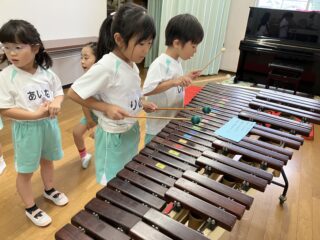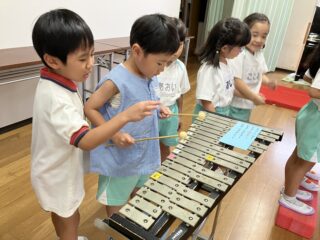 合奏の担当決めに向けて、いろんな楽器に触れながら、自分のやりたい楽器の練習を頑張っていました。