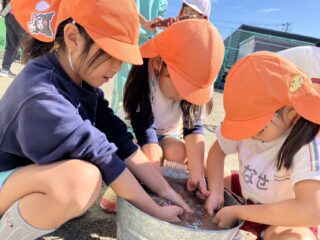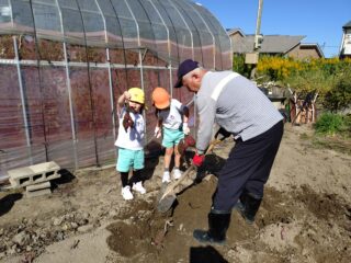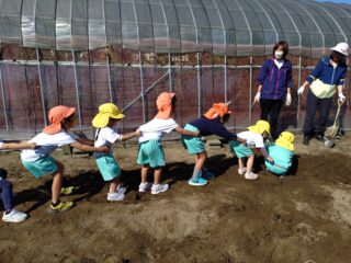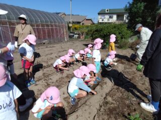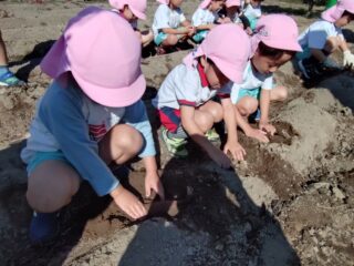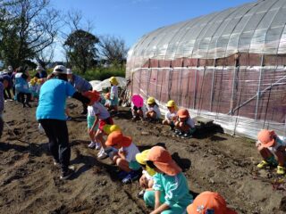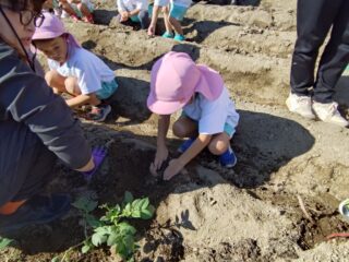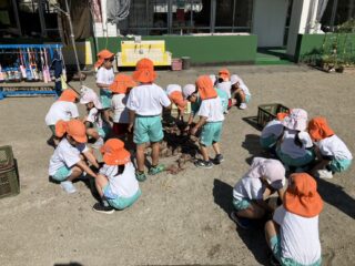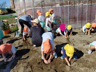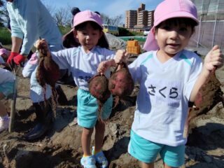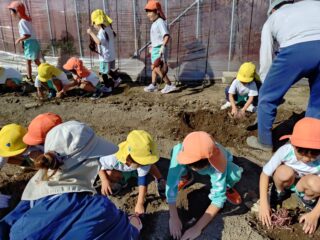 今年は異常気象で例年に比べてお芋の数が少なかったですが、「大きい!!」「掘れたよ!」とみな嬉しそうでした。
