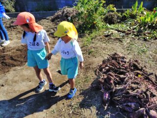 28日は年中組が、29日は年長組が年少組のお世話をしながらお芋を掘りました。
