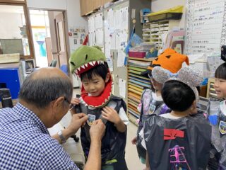 『ハッピーハロウィン🎃』『ワッペンもらいにきました👻』の合言葉を伝え、無事ワッペンをゲットした子どもたちでした😊✨