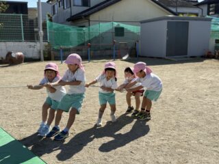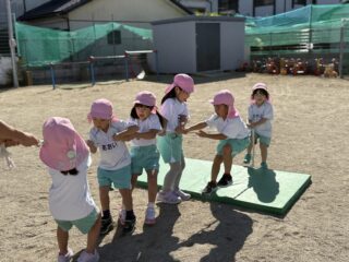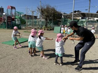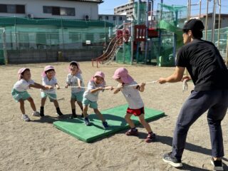 だいち先生のながーーいしっぽをチームごとに力を合わせて引っぱります✨️