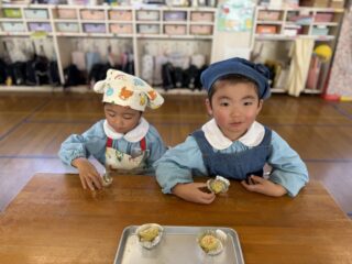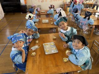 自分たちで作った茶巾しぼりは特別においしかったようで、「おいしいね〜!」と言い合いながら、