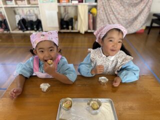 今年はお芋を潰したり、材料を入れて混ぜるところから自分の力でがんばりました💪