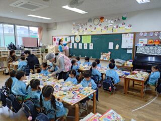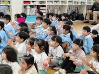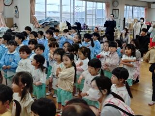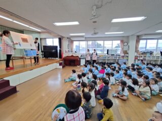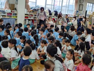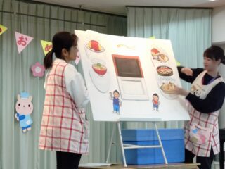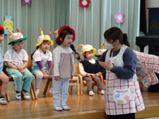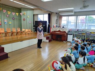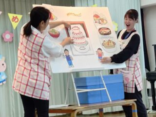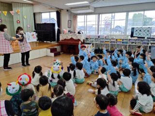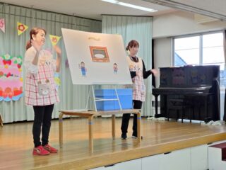 先生たちからはパネルシアター「まほうの電子レンジ」のプレゼント。