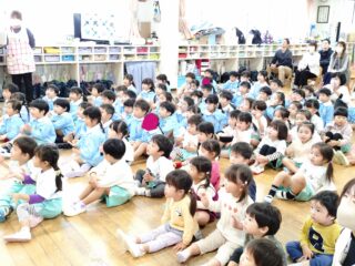 司会の先生から七五三についての話とクイズで七五三のことを学びました。