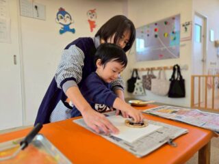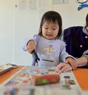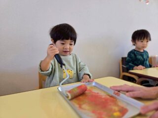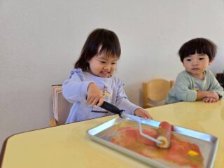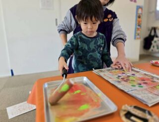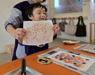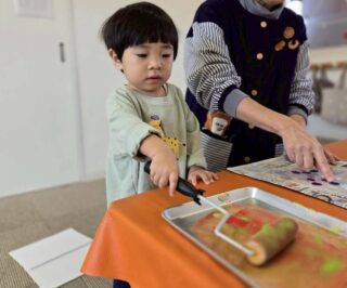 子ども達の不思議そうな、緊張感のある表情、ワクワクした様子がたくさん見られた版画あそびでした😊