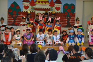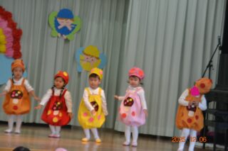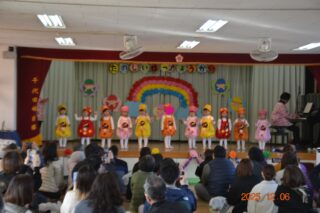 年長組は歌、合奏、ピアニカ奏、遊戯、セリフ劇を、年中組は歌、合奏、舞踊劇を