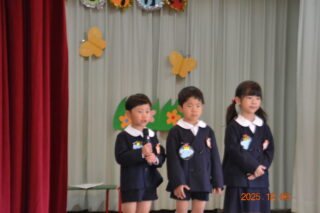 年少組は歌、合奏、遊戯を、2歳児は歌、遊戯を、1歳児は遊戯を頑張りました。