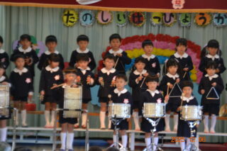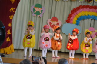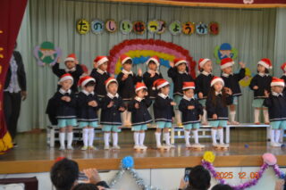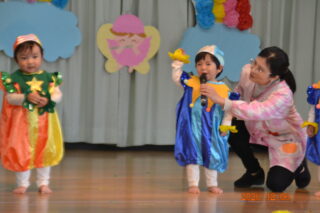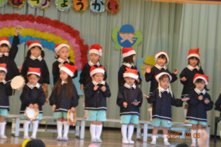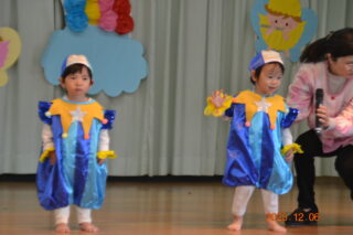 年少組は歌、合奏、遊戯を、2歳児は歌、遊戯を、1歳児は遊戯を頑張りました。