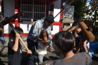 臼と杵でつくおもちつき。初めての経験する子どもも多かったようです。