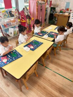 小さく切った色画用紙をのりでペタペタと貼り付けていきました。