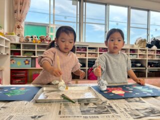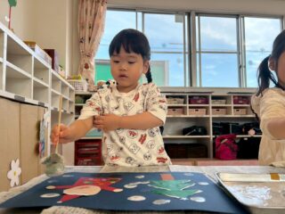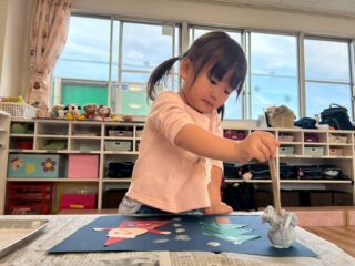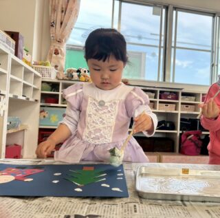 小さく切った色画用紙をのりでペタペタと貼り付けていきました。