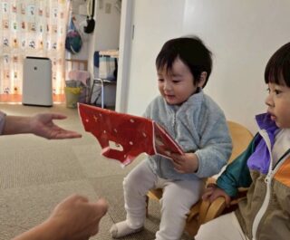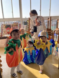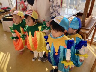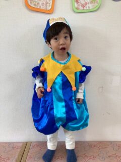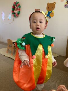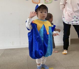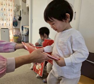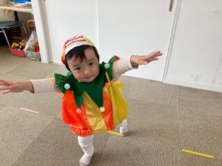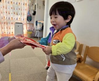 お遊戯後、プレゼントをもらうとニコニコ顔でした♪