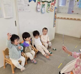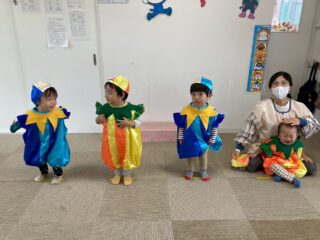 ⭐️ひよこ組さんは、横並びに立つこと、帽子をかぶることなど、少しずつお遊戯の練習をしていました。