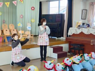 会の最後はみんなで「赤鼻のトナカイ」を歌いました。手遊びもあわせて楽しみました。