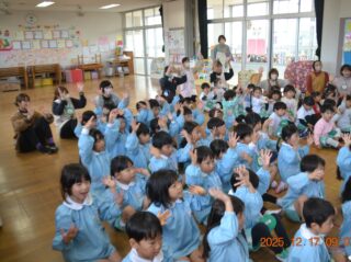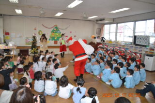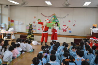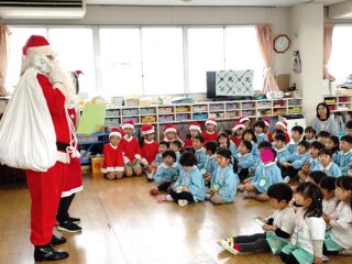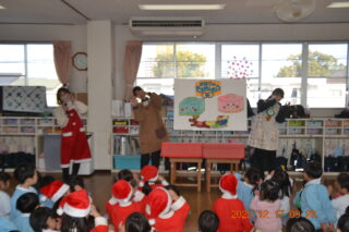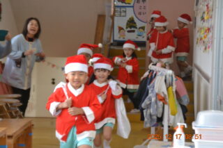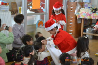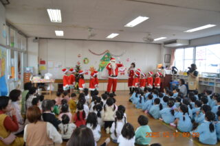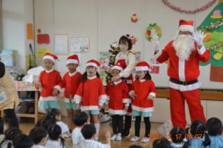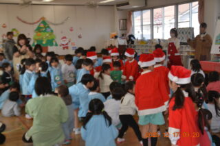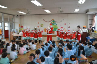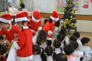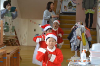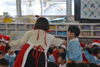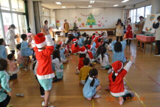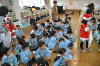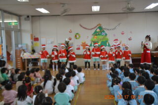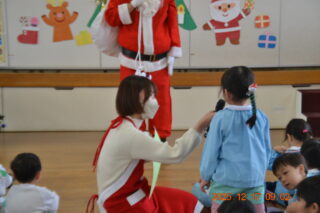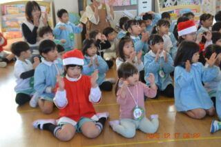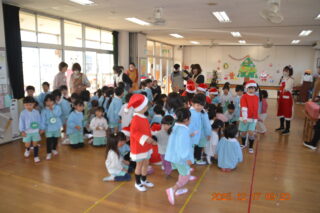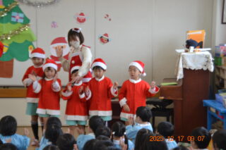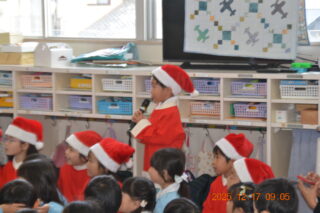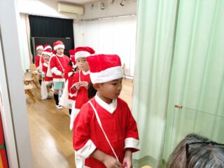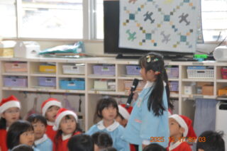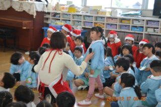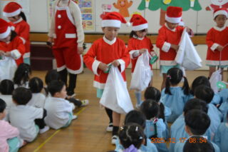 年長児がちびっこサンタになって小さい組さんを楽しませます。