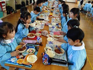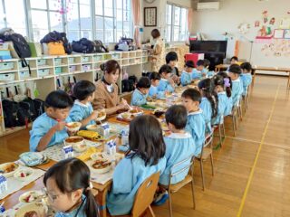 楽しい会の後は、給食の先生たちが作ってくれた特別メニューの給食。