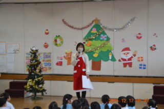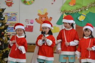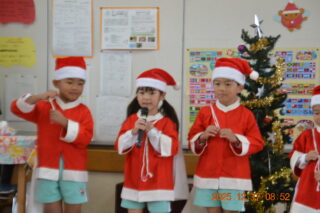 来てくれたお礼に「赤鼻のトナカイ」を歌いました。