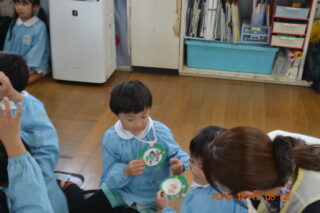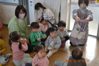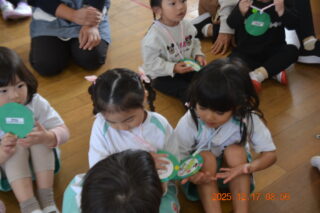 「まほうのそうがんきょう」を楽しみました。手をつないで、答えを話し合ってと仲良く参加できました。