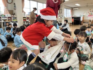 サンタさんに色々質問した後は、みんなで〝赤鼻のトナカイ〝を歌ってお別れしました。