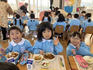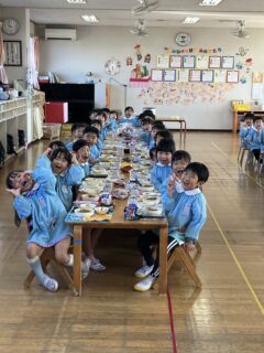 ぱんだぐみさんと一緒に、給食も食べました。