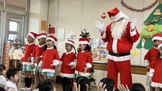 サンタさんに色々質問した後は、みんなで〝赤鼻のトナカイ〝を歌ってお別れしました。