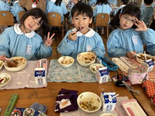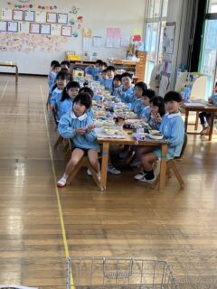 ぱんだぐみさんと一緒に、給食も食べました。