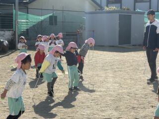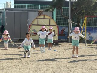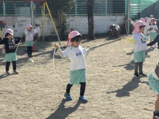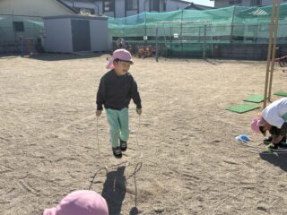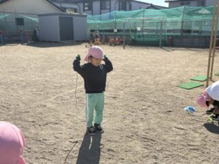 縄跳びに興味を持ち始めた子も多く、自由遊びの際にも「なわとびもっていくー!」と積極的になわとび遊びをするお友達が増えました☺️