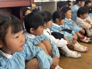 空いてる場所を探して雑巾がけをするぞうぐみさん。とてもカッコよく、みんな真剣に見学していました。
