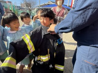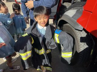 消防士さんが普段使っているお洋服も着させてもらい、とても嬉しそうなお友だちです👨🚒
