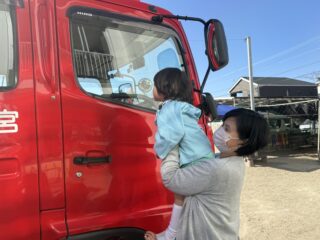 避難訓練後は消防車の見学をさせていただいたぱんだぐみさん🐼
