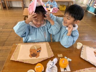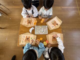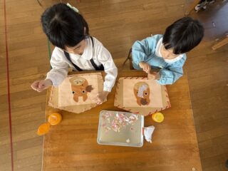 お隣のお友だちとペアになり、パーツを渡してあげたり「上だよ!」と教えながら進めました💭