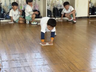 早速今週から、お当番さんのお仕事のひとつとして雑巾がけのチャレンジがスタートしました!