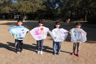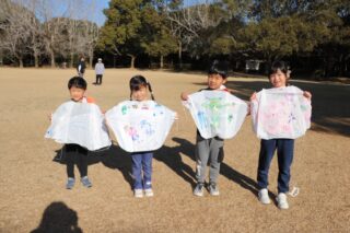 冬休み中に絵を描いた凧を持って、楽しみにしていた凧揚げへ!